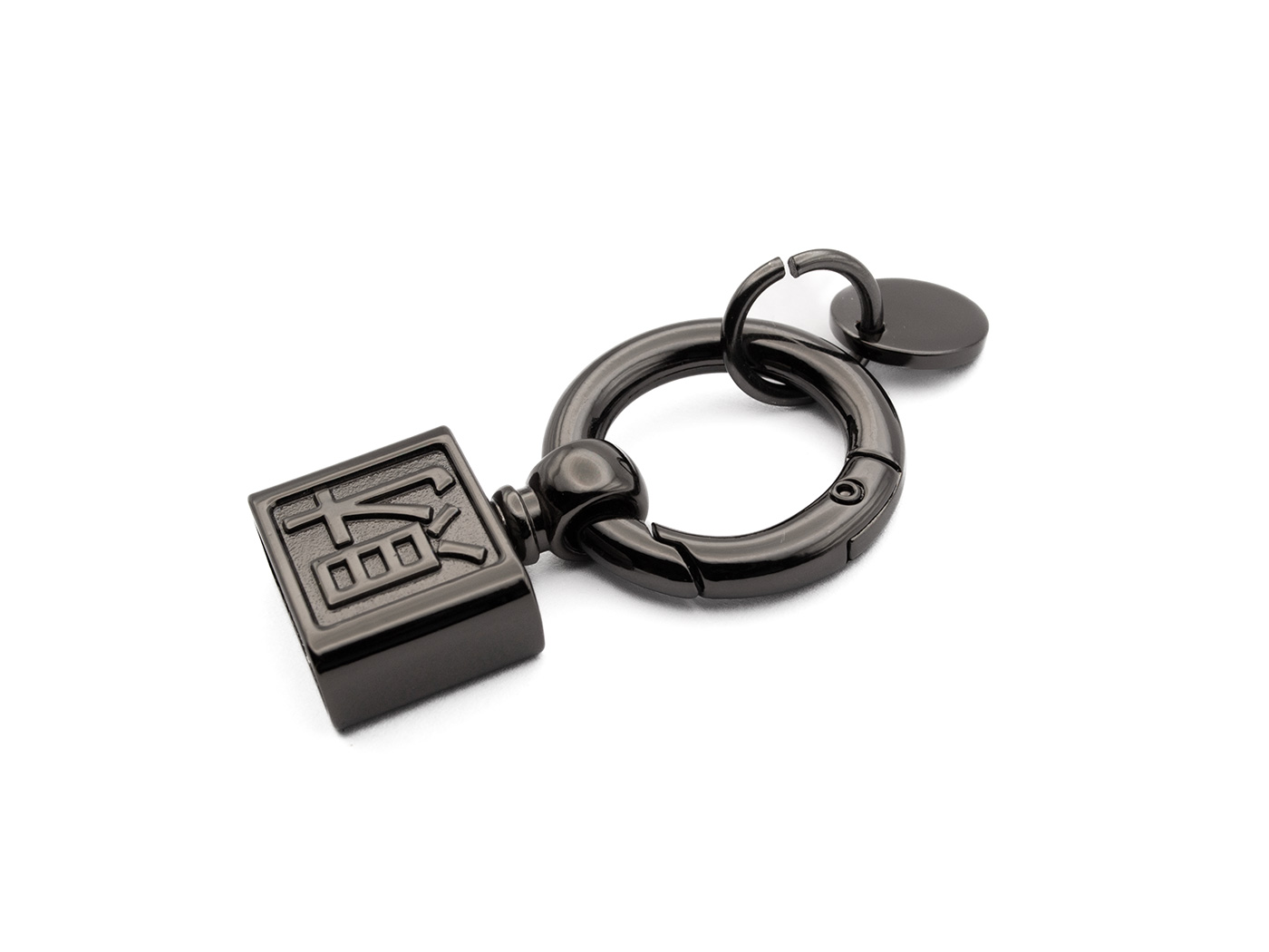 Decorative keyring, gunmetal color, zinc alloy metal, spring ring 19.2 mm, opening 16.8 mm x 6.1 mm