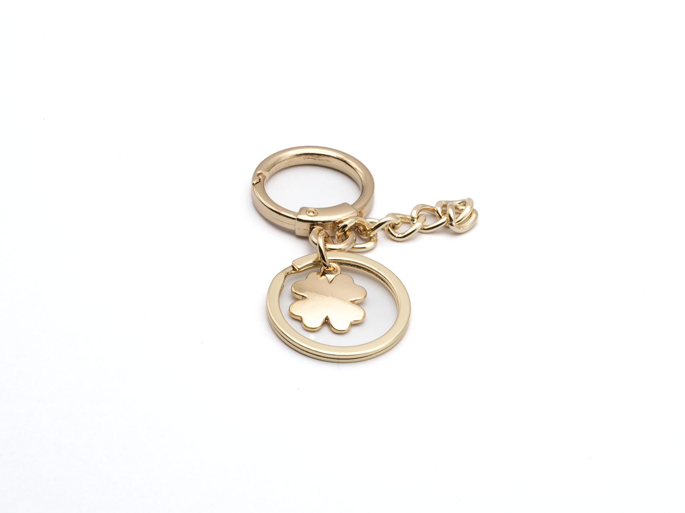 Decorative item for handbags, wallets, and leather goods, made of zinc alloy and gold. 22mm ring. 26mm keyring.